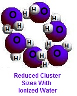 Water is usually found in large clusters of 14 or so water molecules per cluster. Alkaline water ionizer machines break the water down from larger clusters of water molecules to smaller ones. By creating micro-clusters, a water ionizer creates water that is more easily able to pass through pores, tissues and cell membranes. Therefore alkaline ionized water will hydrate the body and cells better and faster.